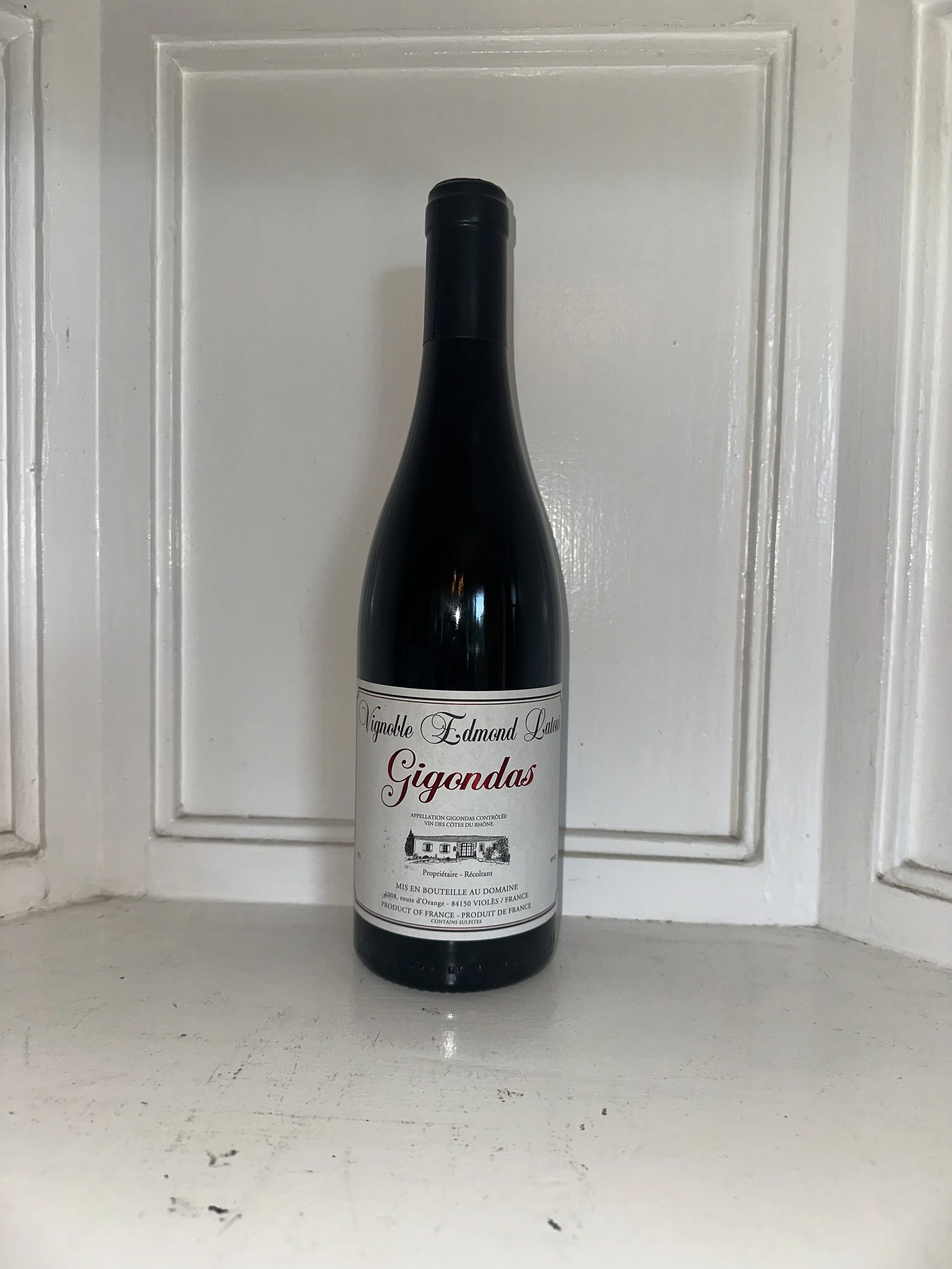 Vignoble Edmond Latour is the estate. Gigondas is the region in Southern France that neighbors Chateauneuf du Pape and Vacqueyras. The area produces the most classic GSM (Grenache, Syrah, and Mourvèdre) blends in the world. Let it breathe and enjoy it with some red meat, something heavy, or by itself.